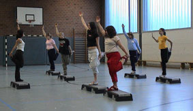 Um auch der jungen Generation Gelegenheit zu geben, sich bei fetziger Musik fit zu halten, bietet Anna Busch eine Aerobicstunde speziell für Mädchen an. Neben der Fitness bietet der Kurs die Möglichkeit, sich mit den Aerobic-Übungen vertraut zu machen um später in einen Erwachsenen-Kurs zu wechseln.