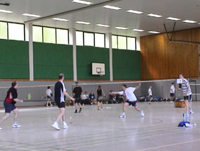 Hierzu waren Sportschuhe u. evtl. Sportkleidung u. Schläger mitzubringen. Eine Anzahl von Badmintonschlägern wurde gestellt. Erfrischungen standen zur Verfügung.